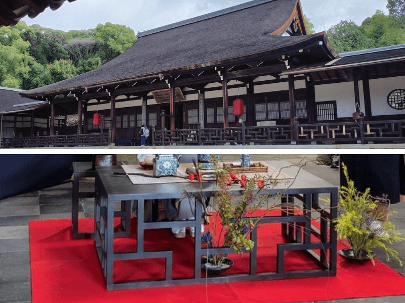今回、茶席が設けられたのは、昨年国宝に指定された「法堂」(はっとう)。法堂とは、僧が講義を行う建物のこと。浅草寺のような大きな提灯が吊り下がり、鮮やかな赤が遠くからでも目を引く。