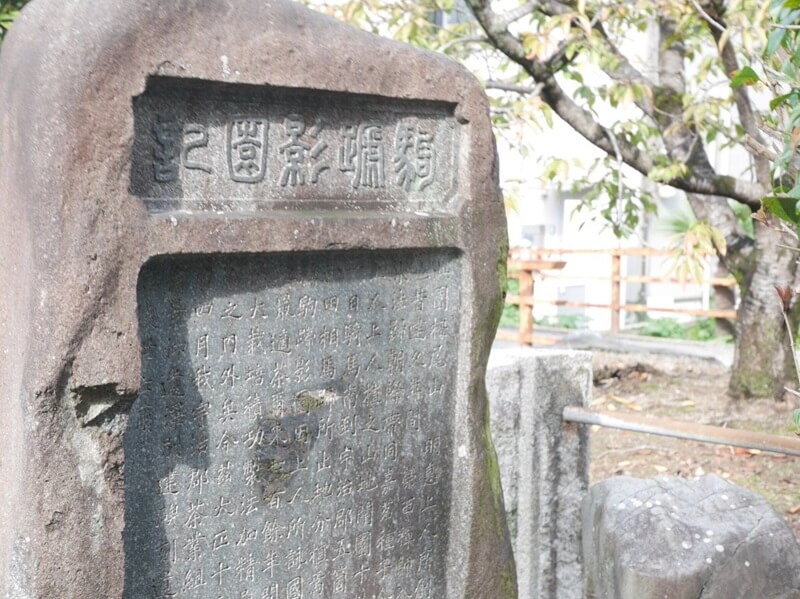 萬福寺の道路向かいの小さな公園に、石碑はひっそりと佇む。以前訪れた時は草が茂っていた印象があったのだが、今回は綺麗に整備されていた。