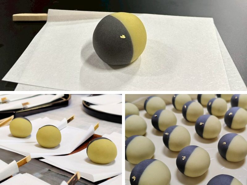菓子は、大阪池田の菓匠、「光楽堂 光國」特製の「金紫満月」(きんしまんげつ)。