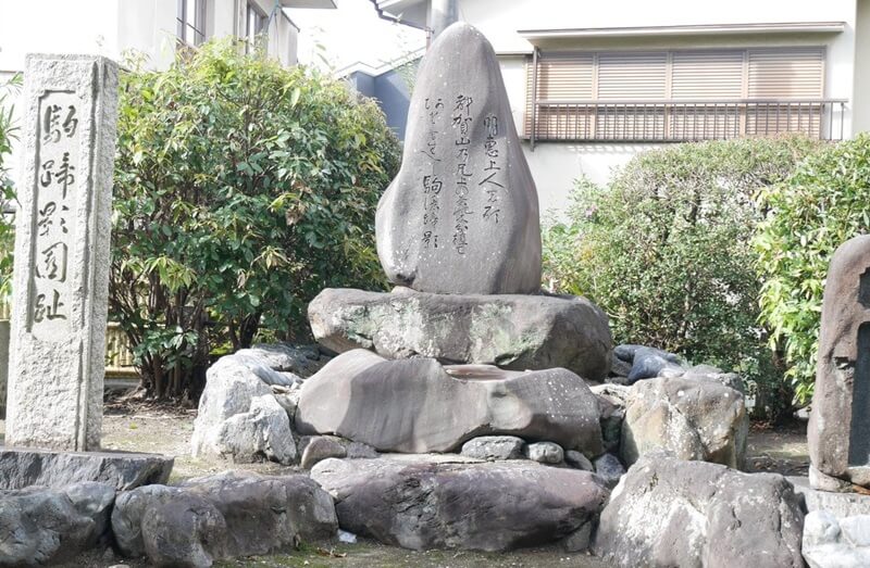 集合時間より早く黄檗駅に着いたので、少し寄り道を。萬福寺の門前にある「駒蹄影園址碑」(こまのあしかげえんあとひ)へ立ち寄る。